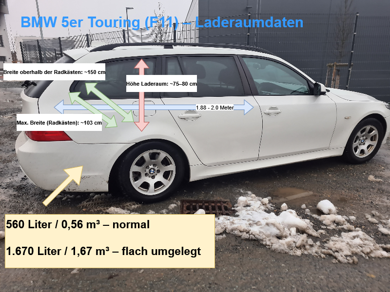 Fahrzeug Ladeflächenmaße (L×B×H) Ladevolumen Nutzlast Bemerkung
